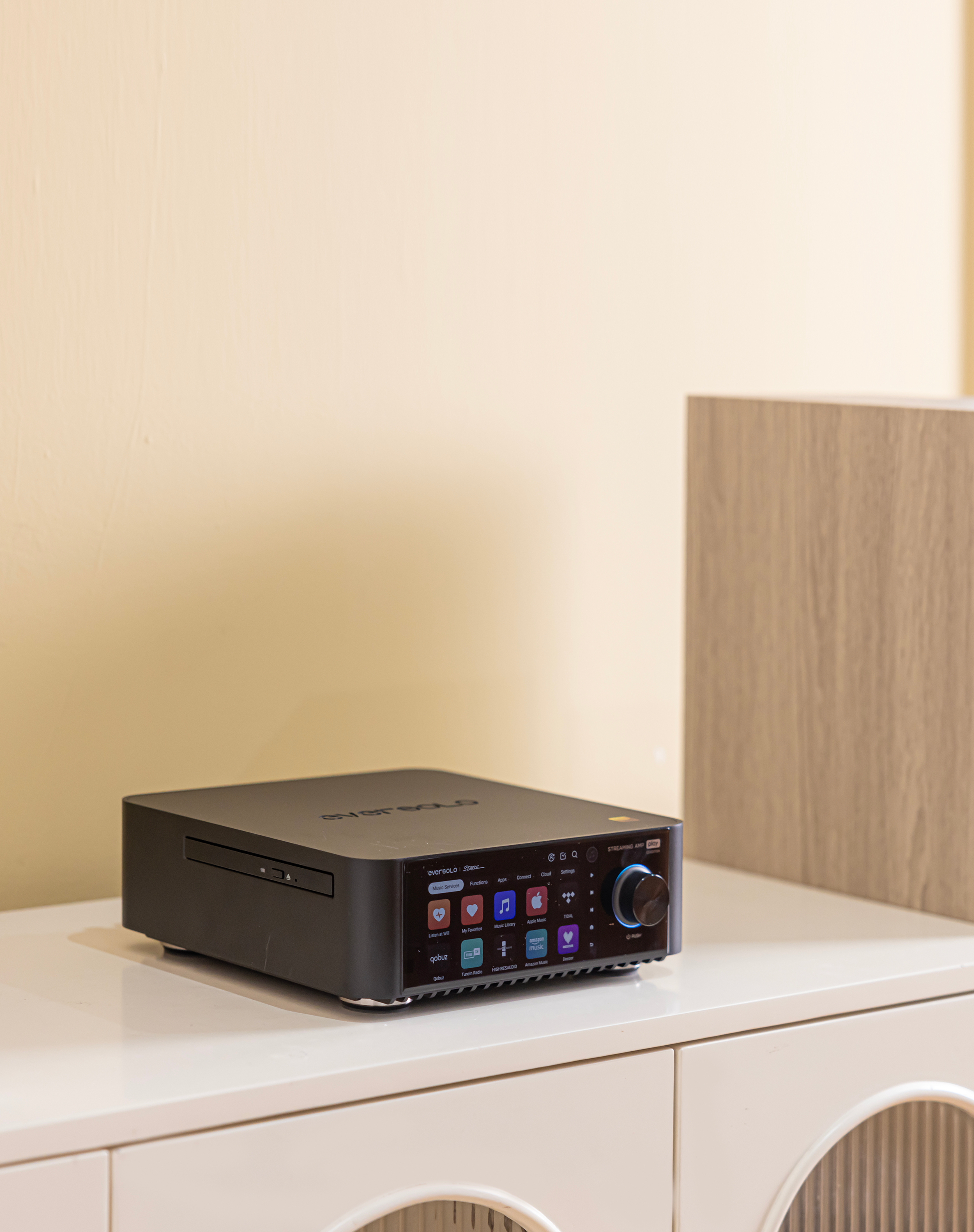 Smart Room Correction No treated studio? No problem. The Eversolo Play features intelligent Room Correction technology that analyzes your listening environment and optimizes the audio output specifically for your room’s acoustics. Beta5 will do the rest to deliver the perfect sound.